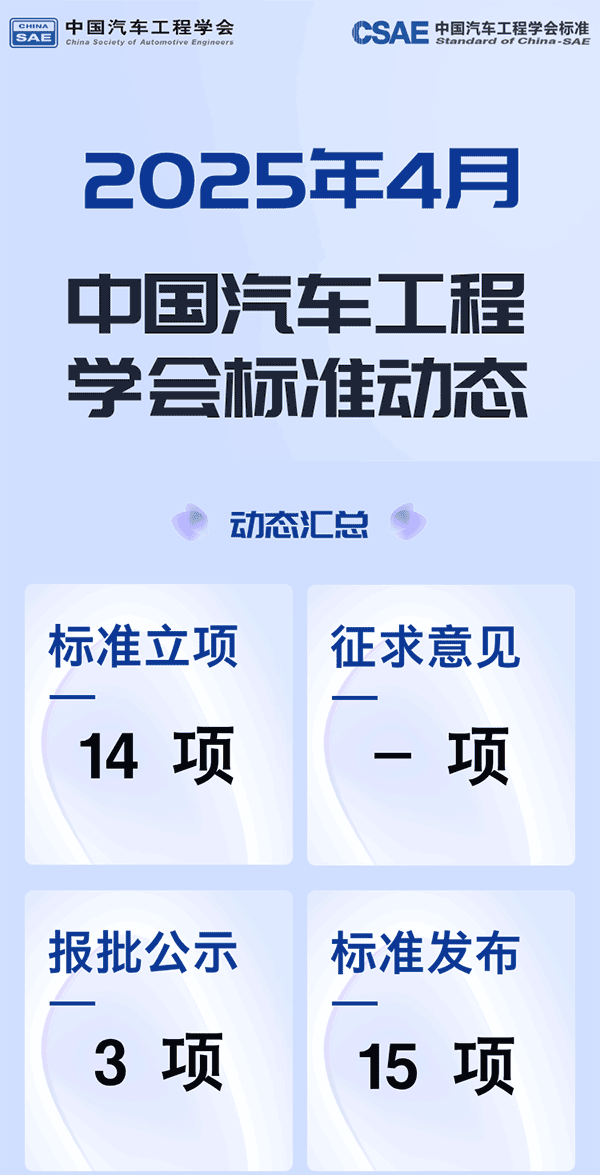 中国汽车工程学会标准研制动态(2025年4月)