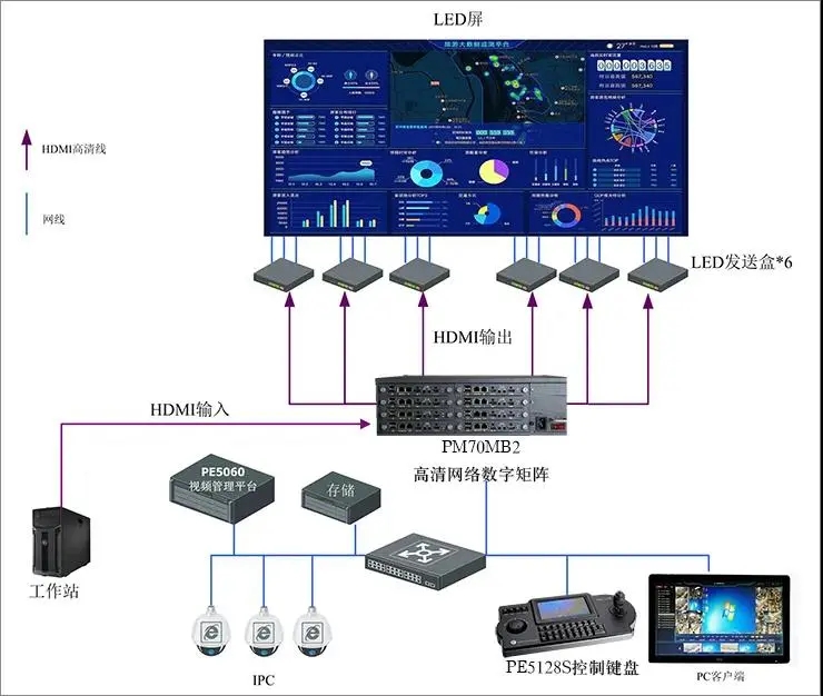 高清网络数字矩阵是目前矩阵产品的主流应用,其功能早已不局限于原来的切换、分割、拼接操作,它作为安防指挥控制中心的核心设备,具有平台功能,被称为“硬件平台”,相比软件平台,它具有运行稳定、操作简单、维护成本低、不受网络病毒入侵等特点,是一些高标准、高要求的监控指挥中心首选产品。