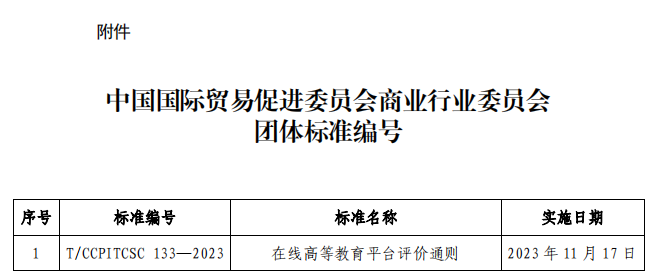 中国国际贸易促进委员会商业行业委员会关于发布《在线高等教育平台评价通则》 团体标准的通知