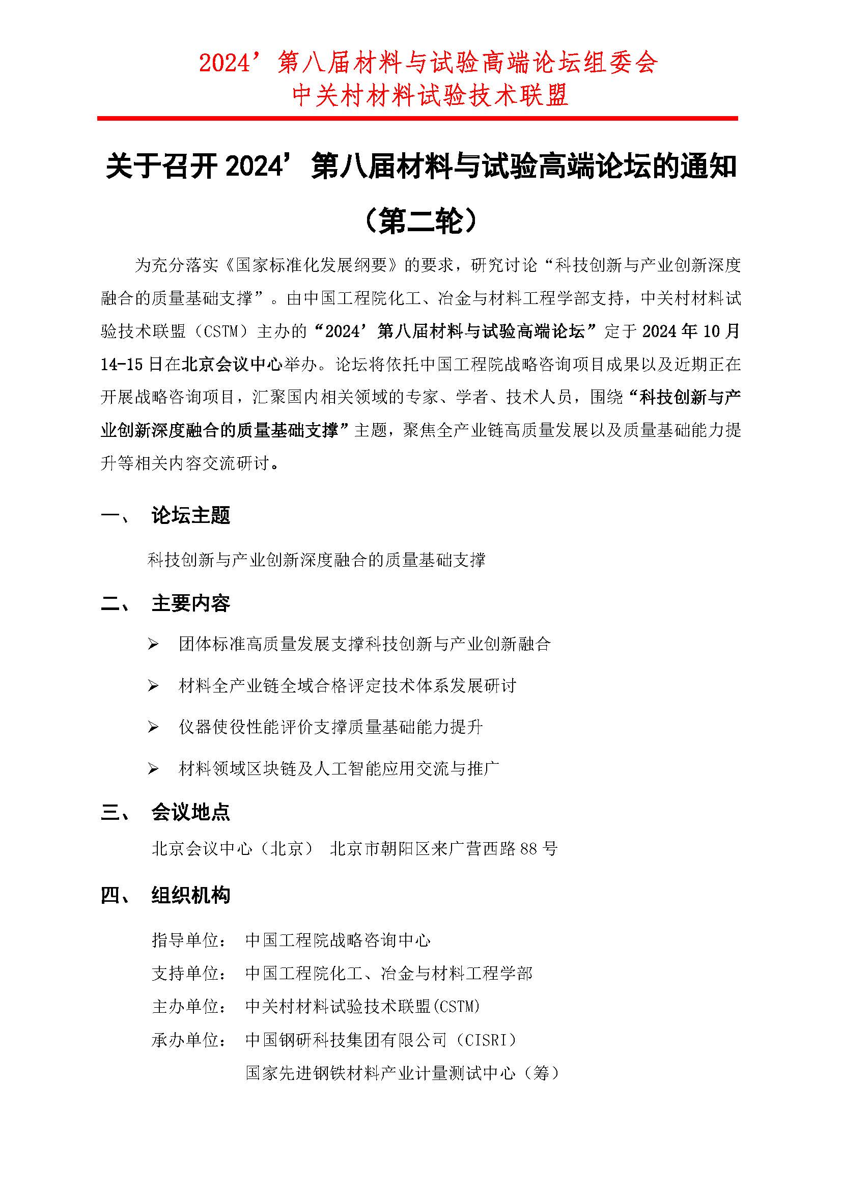 中关村材料试验技术联盟关于召开2024第八届材料与试验高端论坛的通知 (第二轮)